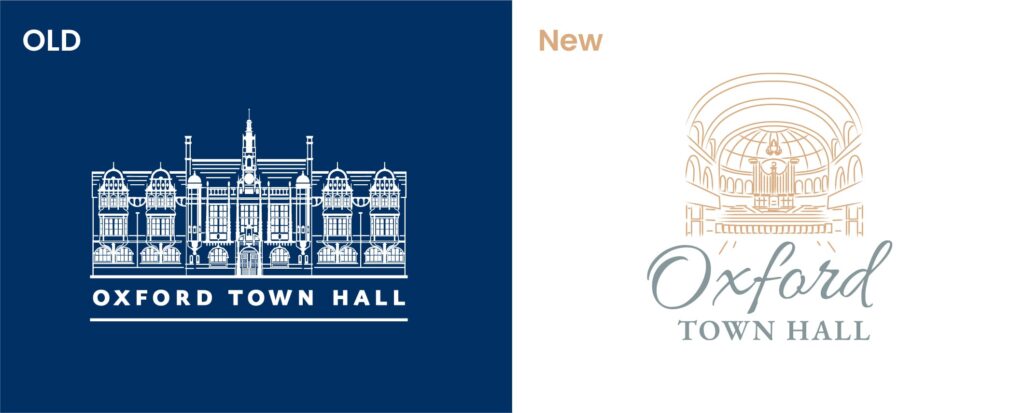 The evolved brand reflects the elegance and heritage of Oxford Town Hall, with a refined logo inspired by the venue’s iconic main hall and ornate domed ceiling. A contemporary gold-and-white colour palette was introduced to create a timeless identity that works seamlessly across both digital and print.